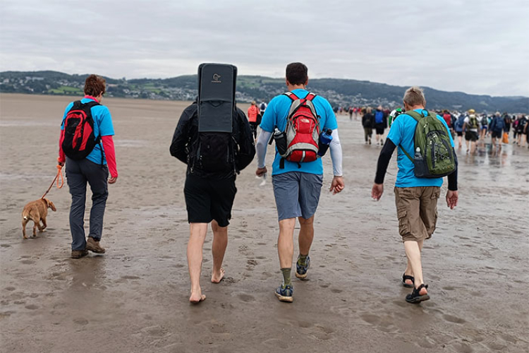Walk Across the Bay coastAfter wading through the softer sands, we stopped before walking through the water for the second time. If you were there, you would have seen people refuelling, eating sandwiches, drinking and bracing themselves for the next adventure.  On the second stretch the sand was harder and easier to navigate.