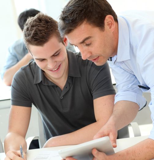 Teacher Helping Students. Shutterstock. Cropped & resized.